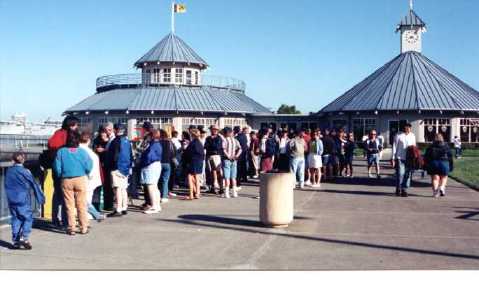 The Baylink Ferry service provided us with a skimmer. We met at the ferry terminal bright and early Friday morning. Everyone was ready for a day at the wharf. We gathered at the head of the line and awaited the arrival of the ferry.