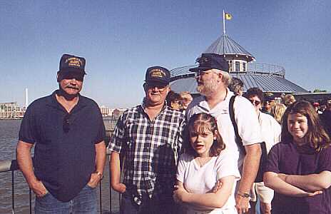 L-R Joe Shaben, Bob Minton, Tom Sugars & his family await the ferry.