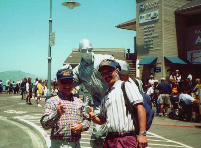 The first thing most of us did after arriving at the wharf was head straight to a submarine. The USS Pampanito SS383 is moored there. It was really a site to see all those blue caps rushing the ticket booth. Someone asked the young fellow inside how much for the entire group, about 75 of us. He was quite flustered and blurted out "Sixty Dollars". Wallets were flying. Everyone started chipping in a couple of bucks until we got the 60. With the price of admission around $5 a head we saved quite a bit of money. I wonder if that kid still has a job?